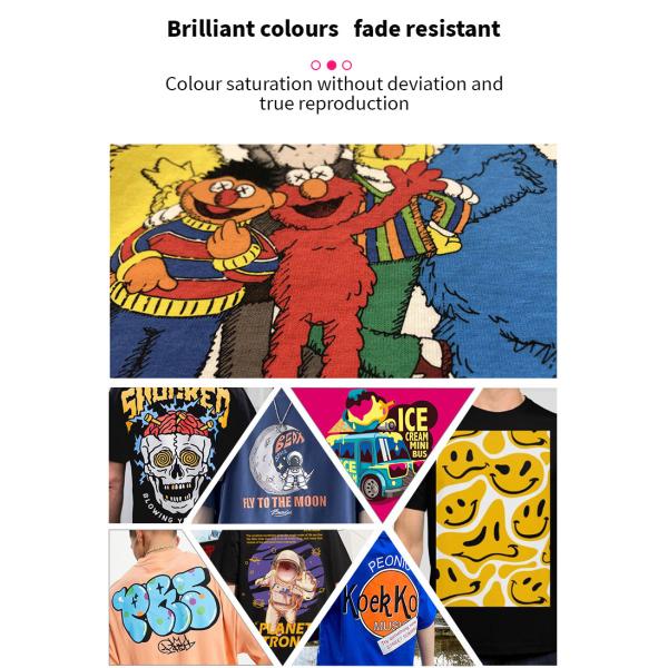 High-quality ink to ensure that the print head does not clog. We recommend inks specially formulated for DTF printing; due to rigorous testing, they should also be made in China for better quality assurance. An example of such a brand is MEITU, which offers a range of DTF inks with high color density and saturation, excellent performance and durability.